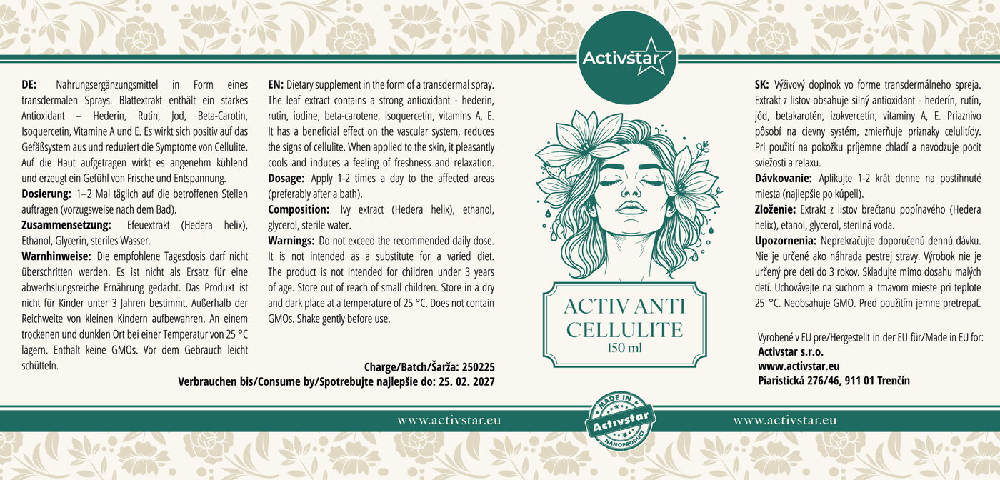 Entdecken Sie die Kraft der Natur in Form eines transdermalen Sprays, dessen Hauptbestandteil Efeu (Hedera helix) ist - eine Pflanze, die für ihre außergewöhnliche Wirkung auf die Haut und das Gefäßsystem bekannt ist. |