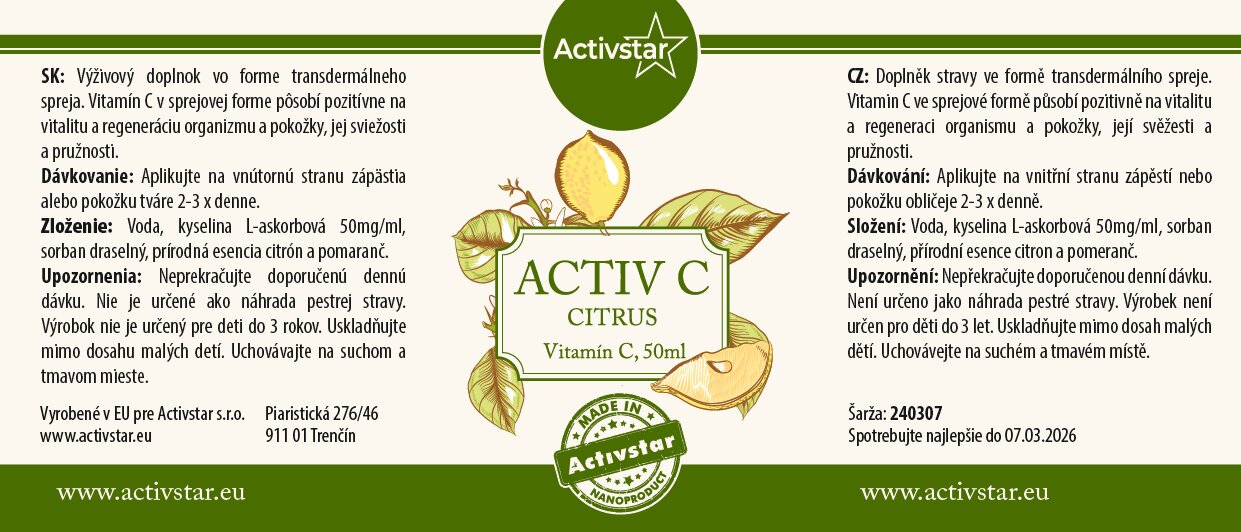 Ich habe seit langem ein Problem mit Vitaminmangel, insbesondere mit Vitamin-C-Mangel, der mir durch das Blutbild bei der Vorsorgeuntersuchung auf der Arbeit bekannt war. Nach einem Monat, in dem ich Activ C in Sprayform auf mein Handgelenk auftrug , korrigierte sich mein Vitamin-C-Spiegel im Blut und war wieder normal.