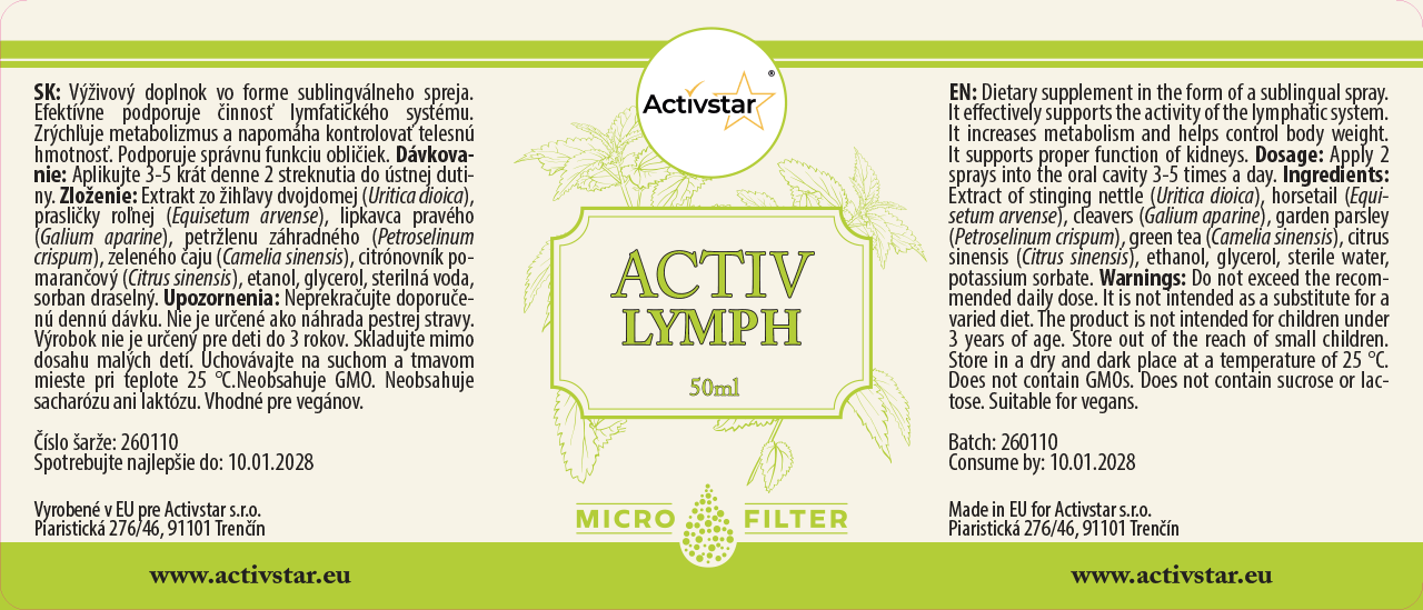 Unterstützen Sie Ihr Lymphsystem einfach und effektiv! Activ Lymphspray ist ein natürliches sublinguales Spray, das die Kraft von Kräuterextrakten nutzt, um das reibungslose Funktionieren des Lymphsystems zu unterstützen. Es hilft dem Körper, Giftstoffe und überschüssige Flüssigkeit auf natürliche Weise auszuscheiden und stärkt das Immunsystem.