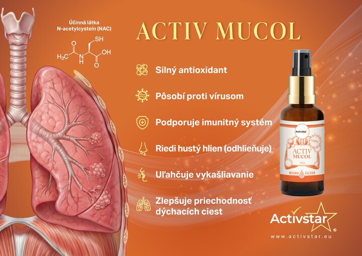 Activ Mucol ist ein Nahrungsergänzungsmittel in Form eines Sublingualsprays, das hilft, den Schleim zu lösen und das Abhusten zu fördern. Es eignet sich für Probleme im Zusammenhang mit den oberen und unteren Atemwegen und unterstützt die Immunität.