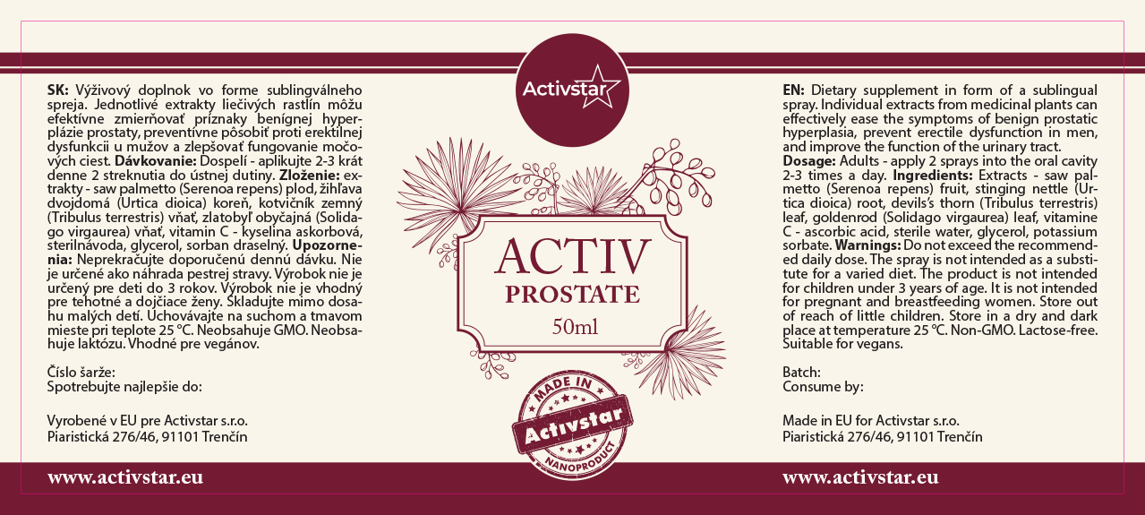 Activ Prostate Spray ist ein speziell formuliertes natürliches Spray mit einer einzigartigen Kombination von Kräuterextrakten, die die Gesundheit der Prostata, des Harnsystems und des hormonellen Gleichgewichts des Mannes unterstützen.