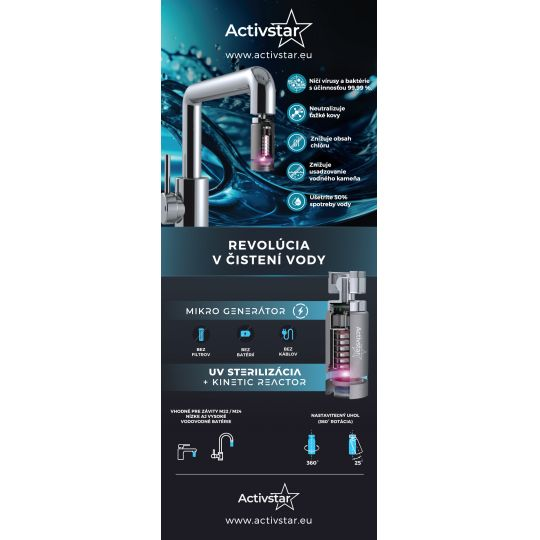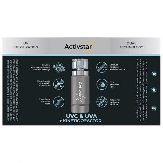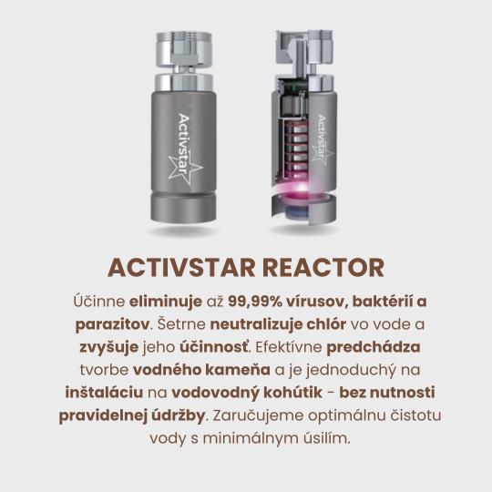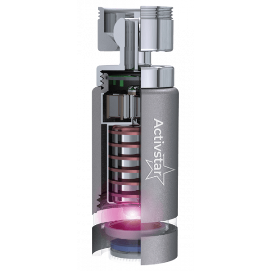 Der Activstar-Reaktor ist ein revolutionäres Produkt zur Wasserreinigung, das zwei Technologien kombiniert: Wassersterilisierung durch UVC- und UVA-Strahlen und Wasserreinigung mithilfe des Kinetischen Reaktors. Das Produkt ist mit einem Drehgelenk ausgestattet. Sie können den Wasserfluss ganz einfach in die gewünschte Richtung lenken. Die Installation ist sehr einfach. Entfernen Sie einfach Ihren klassischen Luftsprudler (Wasserhahndüse) und installieren Sie ihn. WEITERE Informationen + Videos.