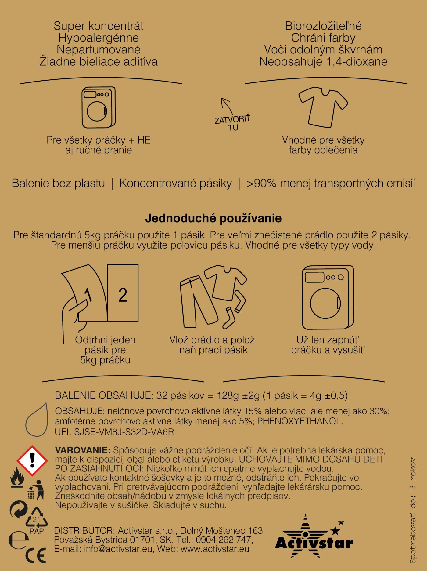 Die umweltfreundlichen ActivStrip-Waschpapiere sind die intelligenteste Art, Ihre Wäsche zu reinigen. Jeder ActivStrip enthält eine hochkonzentrierte, hypoallergene und umweltfreundliche Reinigungskraft in einem kleinen, vorgemessenen Streifen mit flüssigem, waschmittelfreiem Waschmittel, den Sie einfach in die Waschmaschine werfen können. Die schaumarme Formel funktioniert in allen Waschmaschinentypen, auch in Hochleistungswaschmaschinen (HE).